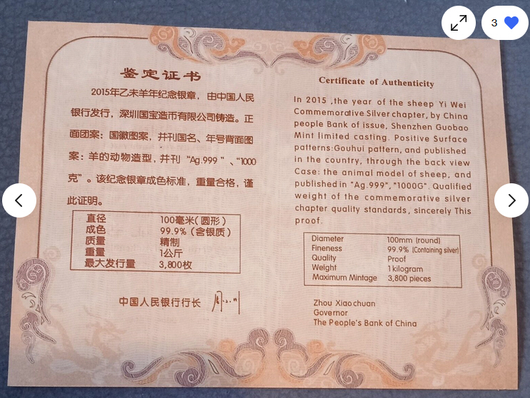 Hier sind die von Ihnen gemeldeten Angebote, die von dieser Entscheidung betroffen sind: Item: 266845865912 China 2015 "Jahr der Ziege" 1 Kg Feinsilber 999, PP