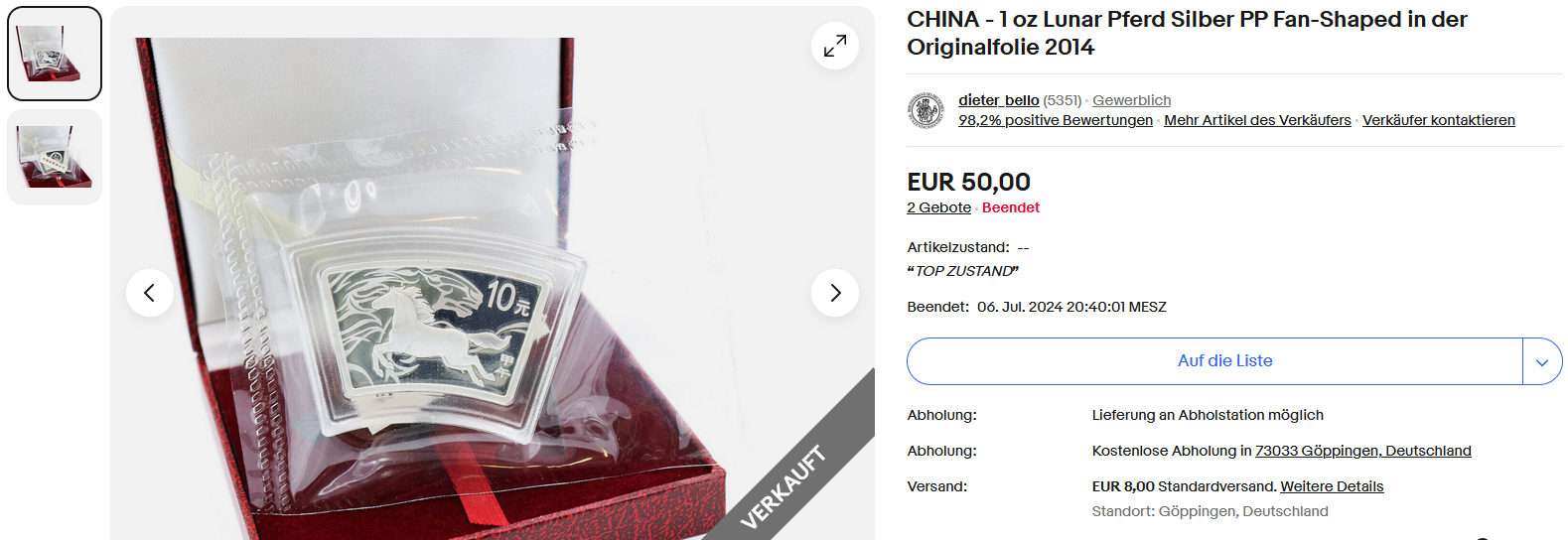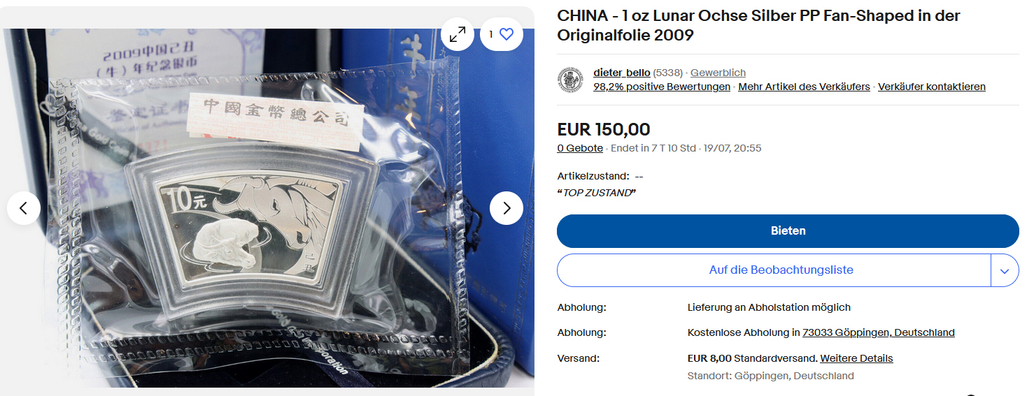 ZitatDie Angebote müssen Fotos von beiden Seiten des tatsächlich zum Verkauf stehenden Artikels(Münze, Barren oder andere Anlagemünze) enthalten.