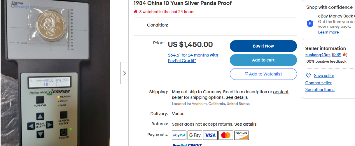Und "Reppa offeriert seine Prägung „ 1 Unze Gold China Panda 1982 “ für 8999 Euro": Reppa hat diese gegradete 10 Yuan wohl eher nicht selbst geprägt.