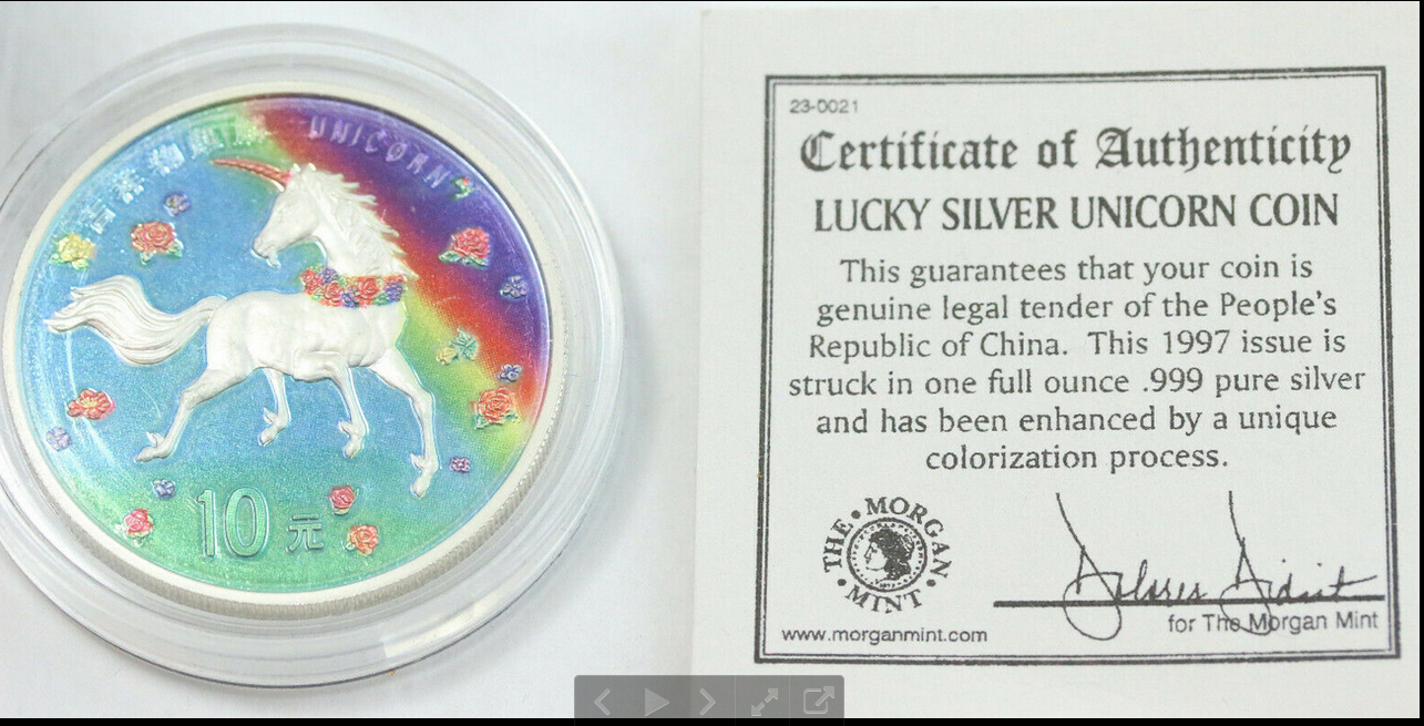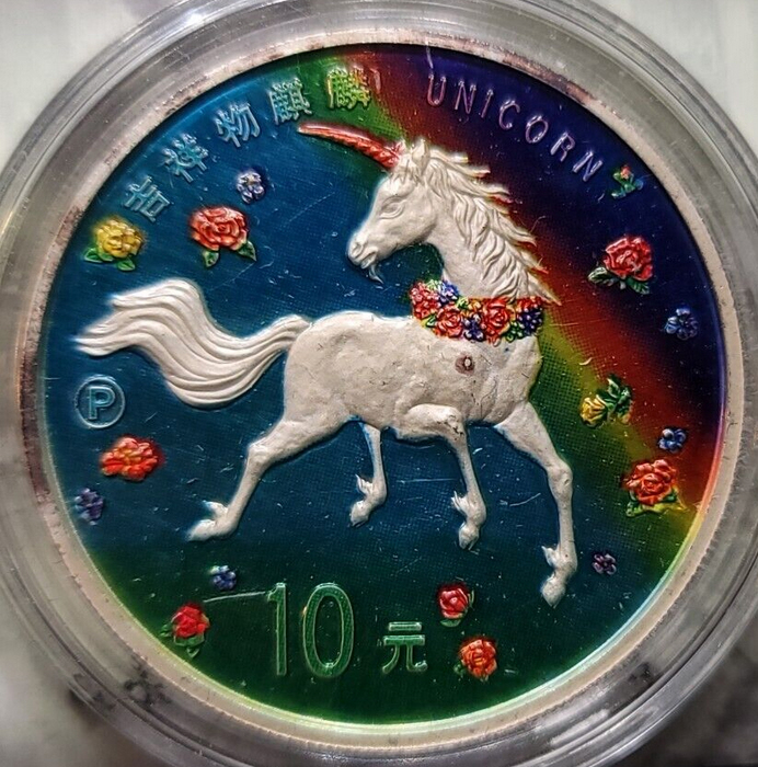 Due to the cancellation marks, NGC has deemed this coin "Not Suitable for Certification" (5778708-018). We propose this coin which has been recently found appart with regular issues of 10 Yuan 2006 Lunar Series, Year of the Dog, Colorized. This mule error presents some details that differ a bit than one might expect from regular issues, but via spectrometry, were able to discern that this was struck in Sterling 999 silver, and weights a ounce. It is rather rare to see counterfeits of legal tender Chinese coins because these would likely be aggressively pursued by government officials.