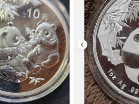 Volksrepublik Bimetall-Proof-Panda 100 Yuan (12 oz) 1992 Gem Cameo Proof, KM-nicht gelistet mit Goldeinlage (vgl. KM399 für diesen Typ ohne Goldeinlage, die Einlage selbst ist KM392). Ein ungewöhnliches Exemplar, das höchstwahrscheinlich auf dem Sekundärmarkt entstanden ist und laut dem privaten Echtheitszertifikat angeblich als Hommage an Ling-Ling geschaffen wurde. Eine 10-Yuan-Goldmünze aus dem Jahr 1992 wurde in das Feld der 100-Yuan-Münze eingelegt. Um die Einlage herum sind eine Handvoll kreisförmiger Markierungen zu sehen, die wahrscheinlich entstanden sind, als mit einem beliebigen Bearbeitungswerkzeug das Loch für die 10-Yuan-Münze gebohrt wurde.