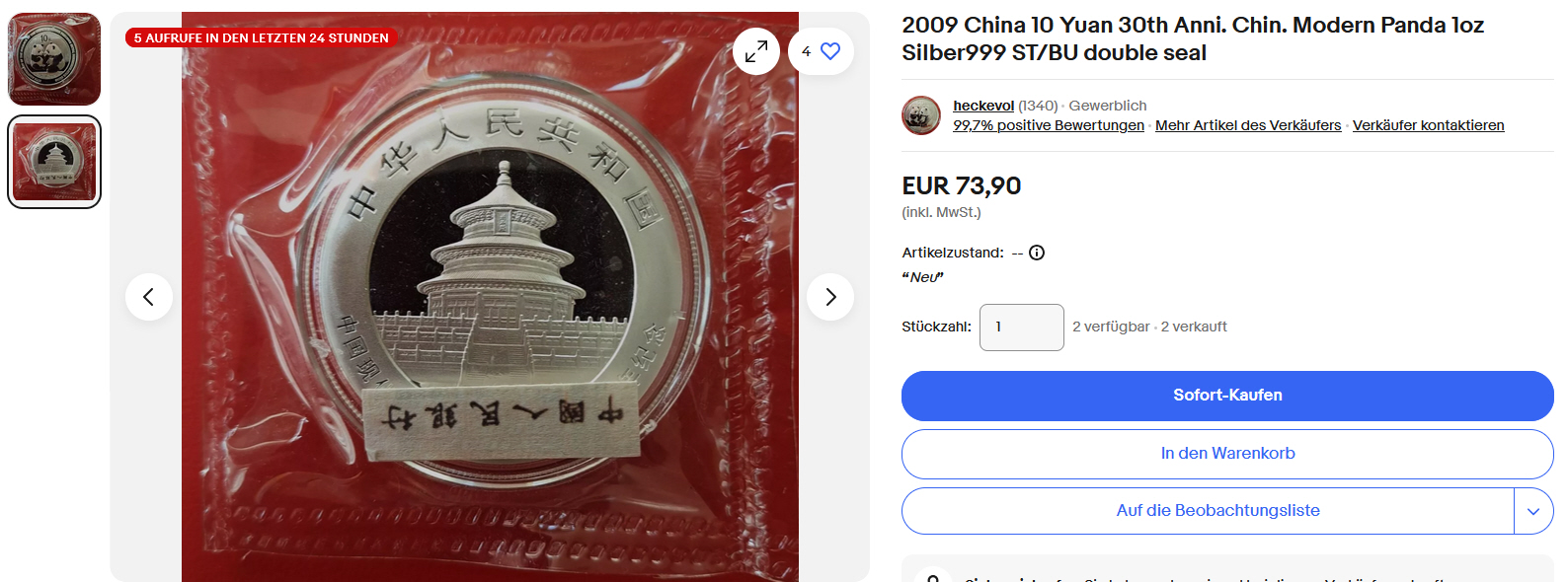 Münze kommt ORIGINAL verschweißt zu Ihnen