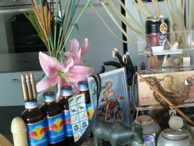 Die Bronzegegenstaände habe ich alle heute den Tag danach gekauft. OX und Tiger der Lunarsternzeichen, sehen aber aus wie Bulle und Bär, ich der ein Chicken, für mich habe ich einen Bronzeaschenbecher gekauft mit Hahn, die Buddhas im Shop, den ich heute zum ersten Mal gesehen, obwohl schon 1000 mal 25 Jahren vorbeigelaufen getauft und von einem abgewiesen Herrn mit viel Buddha Tätowierungen nachdem der Dealer ihn abgewiesen hatte.