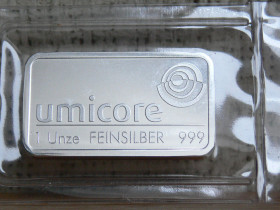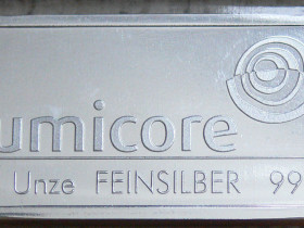 Kurz vor meinem Urlaub will ich hier auch mal wieder was beisteuern. Seit Dezember '07 habe ich endlich auch den letzten der Umicore-Stanzbarren-Serie (1 Unze) mit deutscher Beschriftung. Ich weiß, einige hier sind der Meinung, dass nur ein gegossener Barren ein "echter" Barren ist - trotzdem kann ich mich dem Funkeln eines solchen glatten Barrens einfach nicht entziehen und gaffe ihn mit offenem Mund an, wie ein 11-jähriger, der zum 1. Mal alleine spät zu Hause den Fenseher nach 23 Uhr durchzappt und bei gewissen Filmchen hängenbleibt, bei denen der Handlungsstrang nicht gerade die zentrale Rolle spielt.