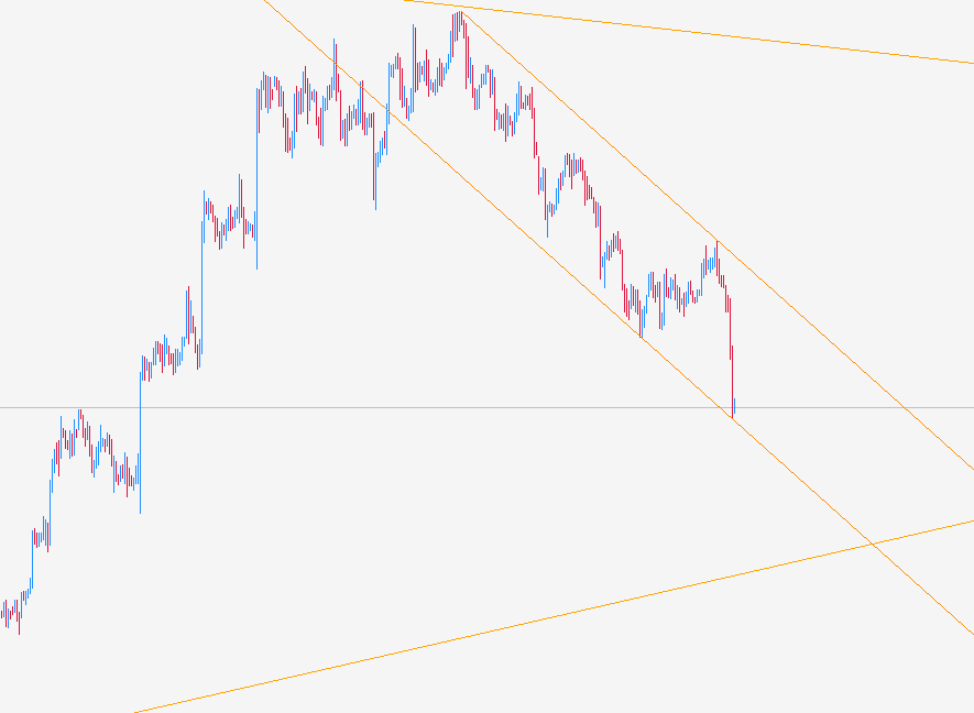 Nach klassischer SKS Formation im M5 Chart, kam um 15:30 heute der Ausbruch nach unten. Nächstes Ziel Daily Supportlinie um $ 1710, wenn dieser durchbrochen werden kann sollte das Ganze schnell auf $ 1700 runterrutschen.