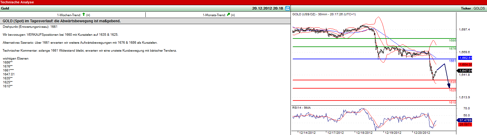 .... bei der wochen support linie um 1668 herum kreuzen sich zwei trendlinien, war klar dass XAU dort dann einen halt findet.... CCI/EMA sieht man auch, dass es noch tiefer gehen wird, dieses jahr wird die letzte chance sein noch physisch einzukaufen, bis zum 31. wird XAU definitiv noch geshortet, denke dass alles um 1640 ziemlich fix ist, evtl, sehen wir einen fetten spike um die stop loss mitzunehmen, weil bei 1630 sicherlich viele auf buy limit sind........