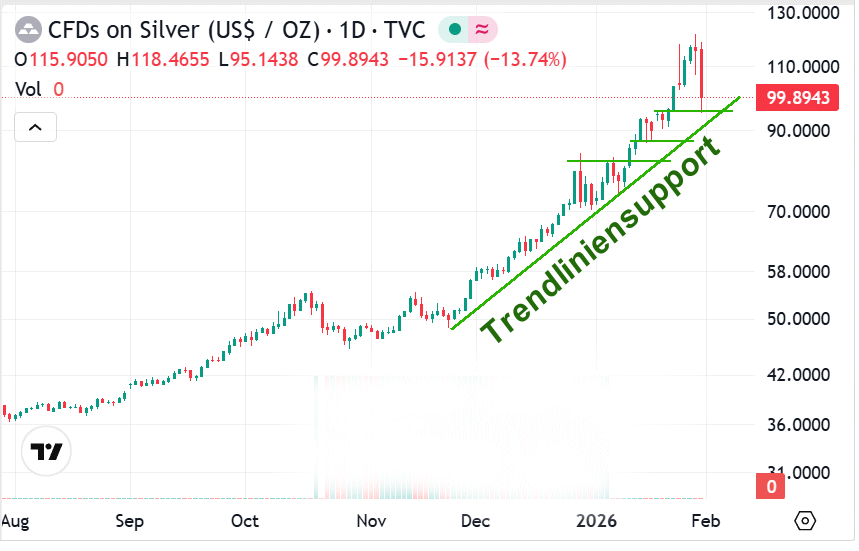 …und das gailste, gleichzeitig Gold (6 % ) und Silber (9 %) im Plus. Die ’Entkoppelung‘ ist mittelfristig wichtig.