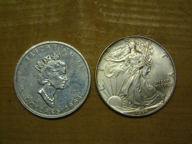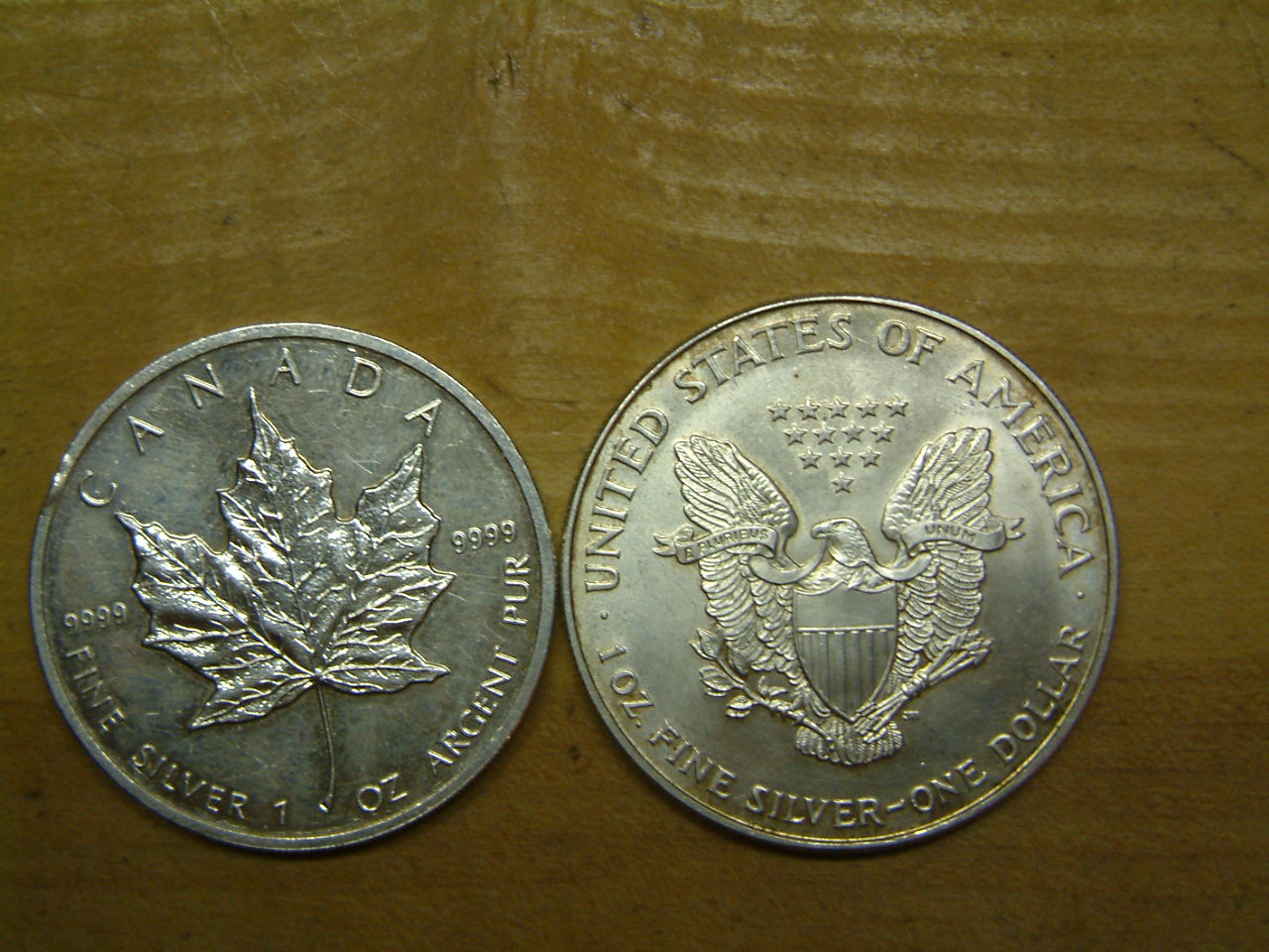 Die sind jetzt seit 14 Jahren in so einem alten Münzalbum gesteckt, der Mapel ist deutlich weniger angelaufen als der Adler. Dafür hat der Mapel irgendwie zwei kleine Dellen in der Ronde bekommen. ![]()