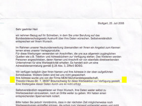 Daraufhin habe ich einen tollen Brief vorbereitet (Anhang PDF).... direkt hiernach bekam ich post mit der bitte um mehr zeit... und darauffolgte dann dieser Brief (Anhang JPG).soviel zum Thema MDM.... die Scheffeln zusätzlich auch noch Geld mit euren ganzen Bestelladressen die sie locker flockig weiterverkaufen....
