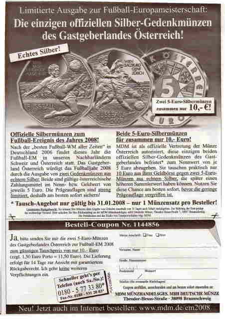 heute in der BAMS zwei 5 Eur Münzen für 10 Eur,