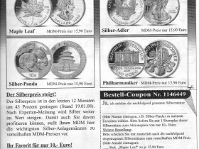 eine Unze nach Wahl (ML, Eagle, Panda, Phili) für 10 Euro und weitere für 15,90