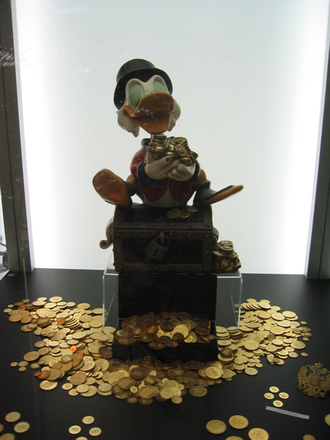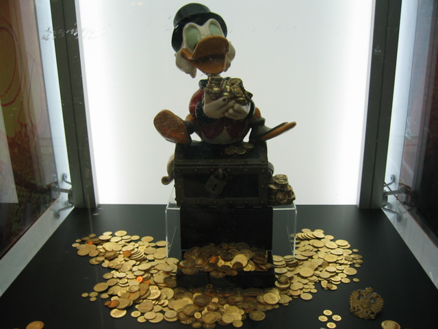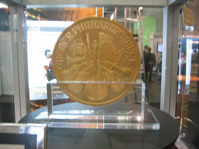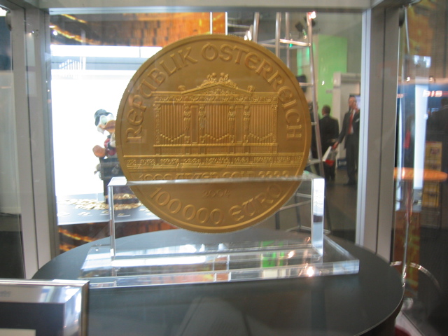 Die Austrian Mint hat hier ihre 1000 Unzen Münze ausgestellt und außerdem viele kleine Philharmoniker aus Donalds Schatzkästchen.