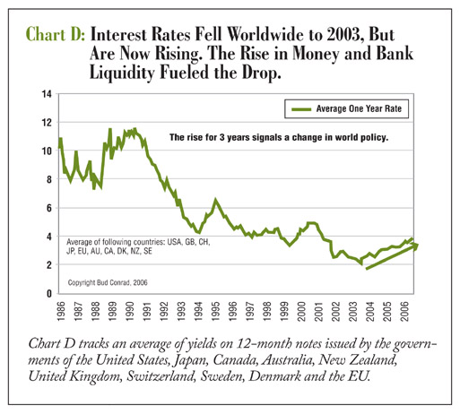 Chart D shows that interest rates on 12-month government debt have been on the rise for 3 years, an indication of rising inflation expectations consistent with the strength in gold and silver over the same period.