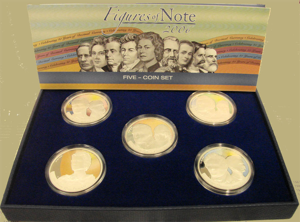 biete hier insgesamt 3 Sätze des Silbersatzes 40 Jahre Einführung dezimale Währung zum Verkauf. Es handelt sich pro Satz um jeweils 5 x 1 oz Feinsilber (999) und die Auflage beträgt laut Australian Perth Mint nur 2.500 Stück. Zu jedem Satz gehört ein numeriertes Zertifikat, eine passende Schatulle mit einem blauen Kunstlederbezug (o.ä.) sowie noch ein Schutzumschlag. Bessere Bilder sowie eine kmplette Beschreibung findet man noch auf der Homepage der Perth Mint. Der aktuelle Ausgabepreis beträgt 218,- € plus Versandkosten, ich verkaufe die Sätze gegen Höchstgebot. Die Fotos sind nicht so Klasse, aber es ist alles erkennbar. Der "Goldschimmer" bedeutet nicht, daß die Teile "goldplated" sind, sondern hängt mit den Lichtbedingungen beim Fotografieren zusammen. Es handelt sich Silber, wobei die abgebildeten Personen dezent farblich unterlegt sind; eine Münze habe ich als Beispiel einzeln fotografiert. Die genaue Beschreibung der personen befindet sich auf dem Zertifikat bzw. auf der Produktbeschreibung der Perth Mint. Und nu´bietet mal schön...