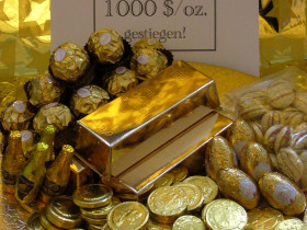 (Es gibt auch ähnliche Schoko-Goldbarren von Goldkenn)