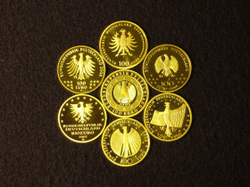 Hier mal drei Bilder von den deutschen Goldeuros. Sieht auch dann noch schön aus, wenn der Goldkurs von Phantasie-Zertifikaten gedrückt wird. Lasst Euch nicht unterkriegen, Goldbugs... Ihr seid die Hoffnung!