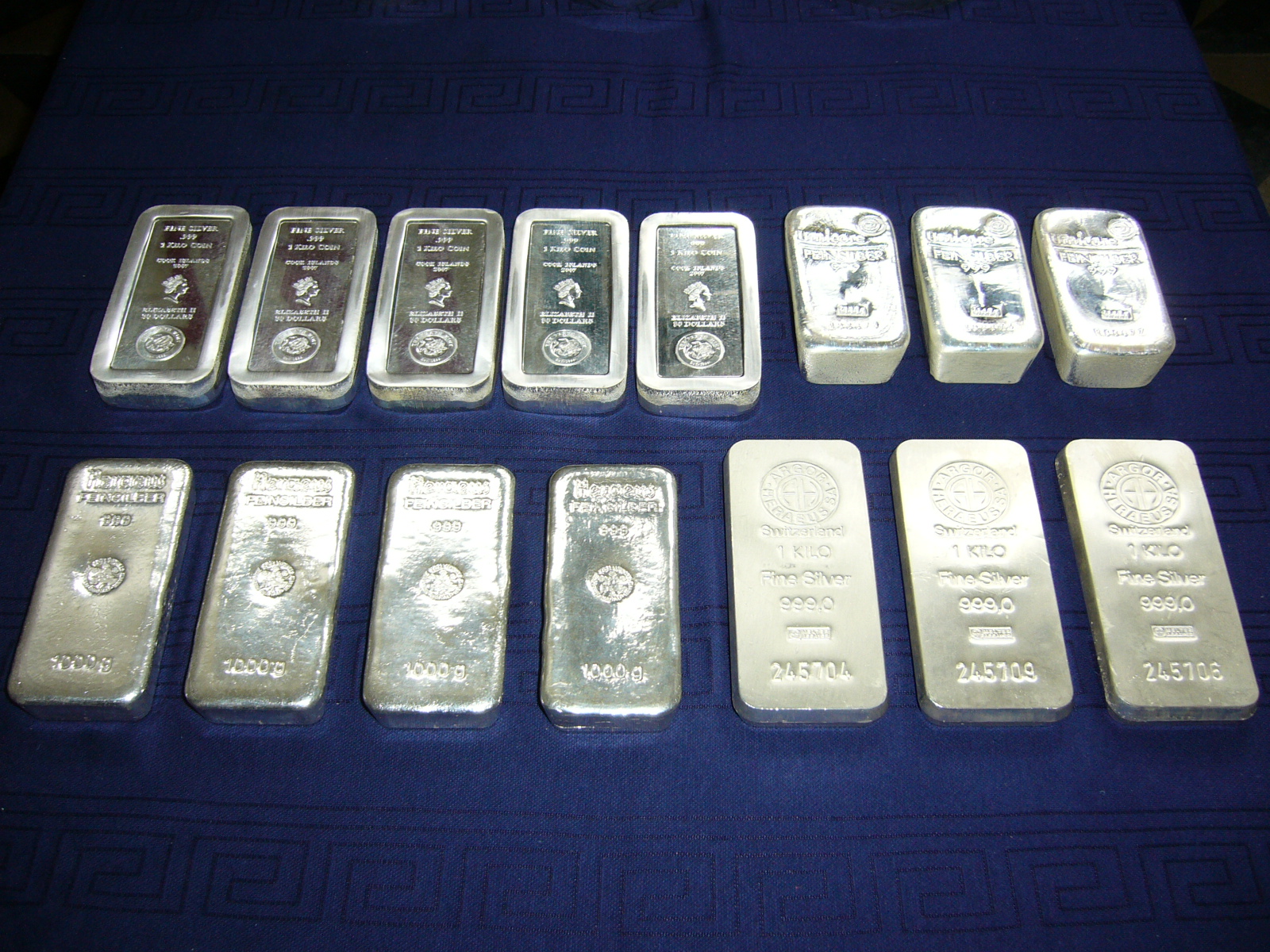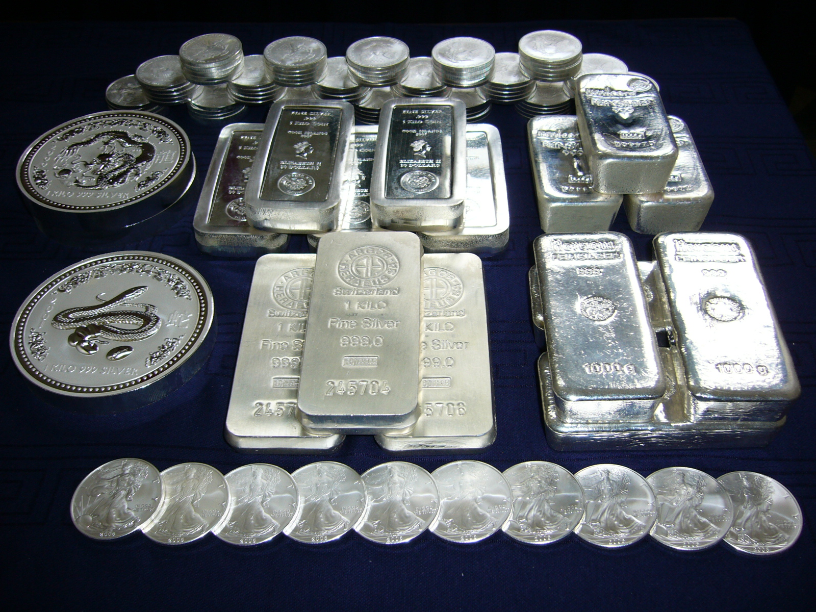 Normalerweise habe ich mein Silber in Aluminium eingewickelt und schön verstaut. Weil ich es aber so schön finde und gerne anschaue, habe ich diese Fotos gemacht. Das Silber wird erst wieder ausgepackt, um damit meinen Ruhestand zu finanzieren. Vielleicht ist es ja schon 2010 so weit, wenn nämlich rein rechnerisch unsere Silbervorräte industriell aufgebraucht sein müssten. Wäre das zu schön um wahr zu sein?