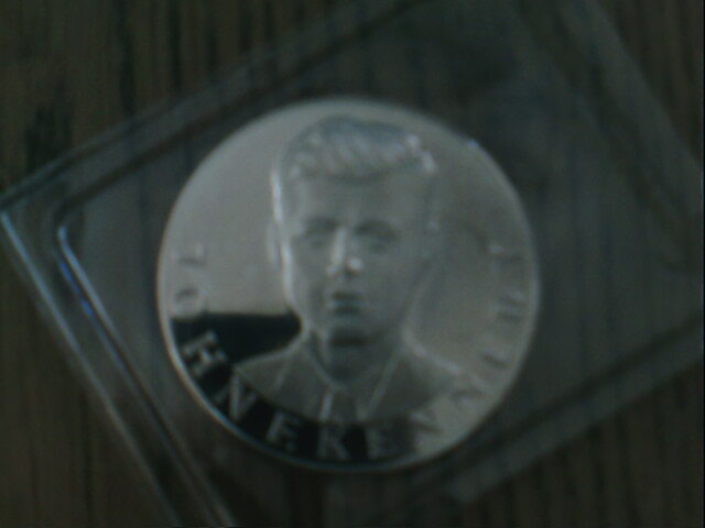 Ich habe ein John F. Kennedy Gedenkmünze von 1963. Ich habe schon mal bei ebay geschaut aber sie nicht gefunden, auch auf anderen Seiten hab ich sie nicht gefunden. Vielleicht kann mir jemand sagen was sie ungefähr Wert ist. Sie ist Original eingeschweißt, aus Silber. Auf der Vorderseite sieht man Kennedy nach vorne blickend und drunter steht john F. Kennedy. Am Kragen steht HOL. Auf der Rückseite sieht man einen Adler mit 3 Wappen: Ich weiß nicht genau für welche Bundesländer sie stehen, aber es ist ein Bär, Adler und ein Löwe zu sehen. Oben steht Welcome in Germany und unten 1963.