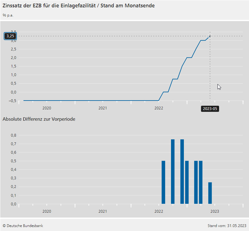 ... Anhebung des Einlagenzinses in zwei Schritten auf 3,75%, danach ein Jahr schauen was die Inflation macht ... ergänzt um eine aktuelle Grafik des Zinsverlaufs ...