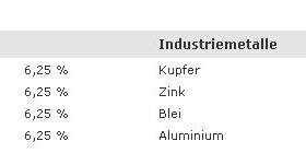 ursprüngliche Gewichtung von 6,25% pro Rohstoff zurücksetzen. -