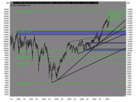 Anfang 2007 schrieb ich, dass der Dow Jones ab Frühjahr oder Sommer 2007 ab 12500 Punkte bereit ist für einen Crash mit Ziel 7200 oder tiefer.