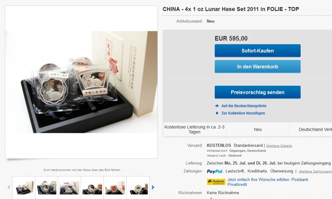 ...nunja... 37,50 Euro für eine 8gr Silbermünze mit 1,9 Mio. Stück Auflage..... auch wenn es eine chinesische Münze ist....