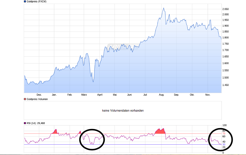 Ich wollte es heute Nachmittag schon einstellen, bin aber nicht dazu gekommen. Ich glaube, das müsste es nun allmählich gewesen sein. RSI erstmals wieder unter 30! Vielleicht am Montag oder Dienstag noch ein letzter Nackenschlag für alle, die sich mit der 1785 USD positioniert haben und noch aus dem Markt gedrängt werden sollen. Eine letzte False Flag quasi. Bin hoffnungsvoll und mit der Entwicklung der Minen die letzten Tage natürlich sehr zufrieden!