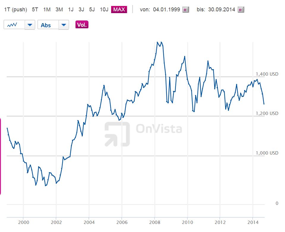 Allerdings kann Gold als Wertaufbewahrungsmittel für manchen Investor schon Sinn im Portfolio machen. Dann ist es allerdings eher als eine Versicherung für den schlimmsten Fall zu verstehen. Dies wäre zumindest nachvollziehbar. Für diese Anleger sind kurzfristige Schwankungen beim Goldpreis allerdings auch nicht entscheidend. Dann wer als Versicherung betrachtet, für den muss egal sein, ob Gold bei unter 1.000 Dollar oder bei über 2.000 Dollar notiert.
