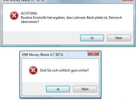 Lustig anzusehen waren auch die kaufsüchtigen Weiber, die eines Morgens vor ihrer Bank standen und diese vorrübergehend geschlossen war. Die eine Dame meinte auf die Fragen "Was glauben Sie wieso diese Bank geschlossen ist": "Die haben wohl zu wenig Personal oder so". Da kann man mal sehen, wie locker die allermeisten die Krise sehen.