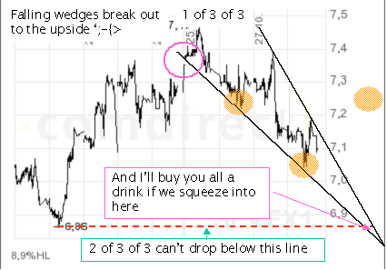 What do you think? If I'm right we will see another derivatives gain for Barrick next quarter and the quarter after that, etc. The fatal flaw in this plan is that it is built out of paper and depends on counter parties to fulfill their debts for the next 15 years. Fat chance! It does keep the accountants off their backs for the time being. I guess the Barrick company motto should be, it's better to hang later than to hang now.