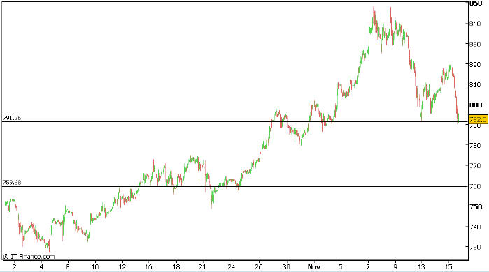 800 waren innerhalb kürzester Zeit durch. Nun wird an der 790er Marke gekämpft. Fällt auch diese nachhaltig, so könnte es doch gegen 760 oder gar 730 gehen IMO ![]()