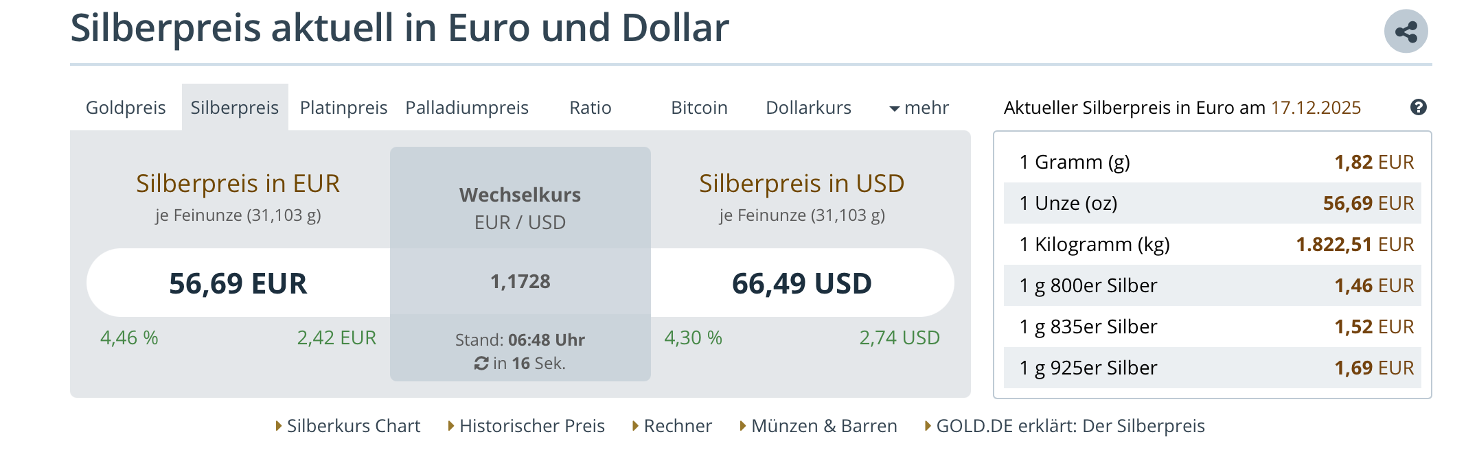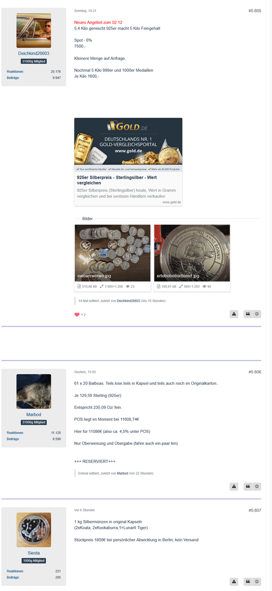 nachdem mein letztes Angebot keinen Anklang fand und seitdem Silber wieder gut 10% gestigen ist, versuche ich es jetzt, 10% teurer noch mal😆