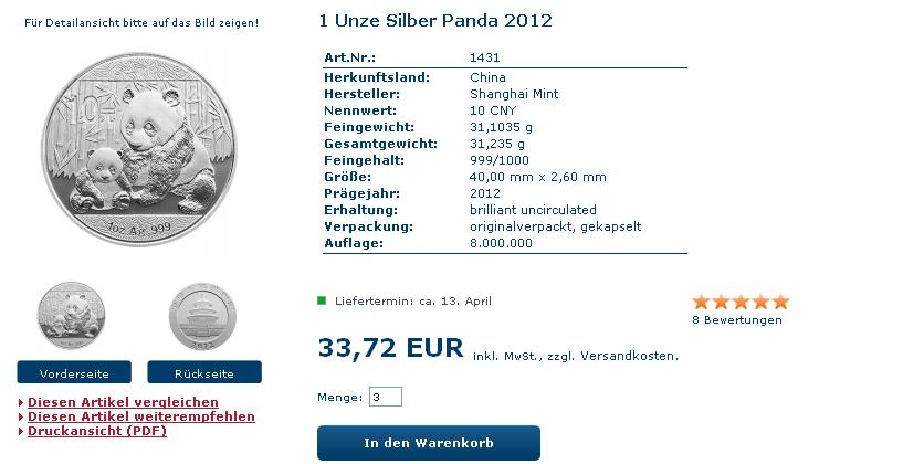 Wir werden sehen - Entscheidend ist nach wie vor, ob sich ein Sammlermarkt entwickelt- das braucht aber min noch 3 Jahre. Erstmal muß der Ag Panda unters Volk, dann kann er Liebhaber finden....