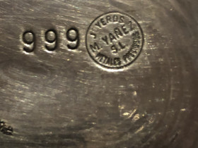 1. Stanzbarren 1/2 Kilo mit verschiedenen Punzen links „30“ und rechts „926“ sowie für mich unleserliche Buchstaben. Auf der Rückseite graviert „Pau Cabre“ was andeutet, dass er in Katalonien gelandet ist. Woher er stammt?