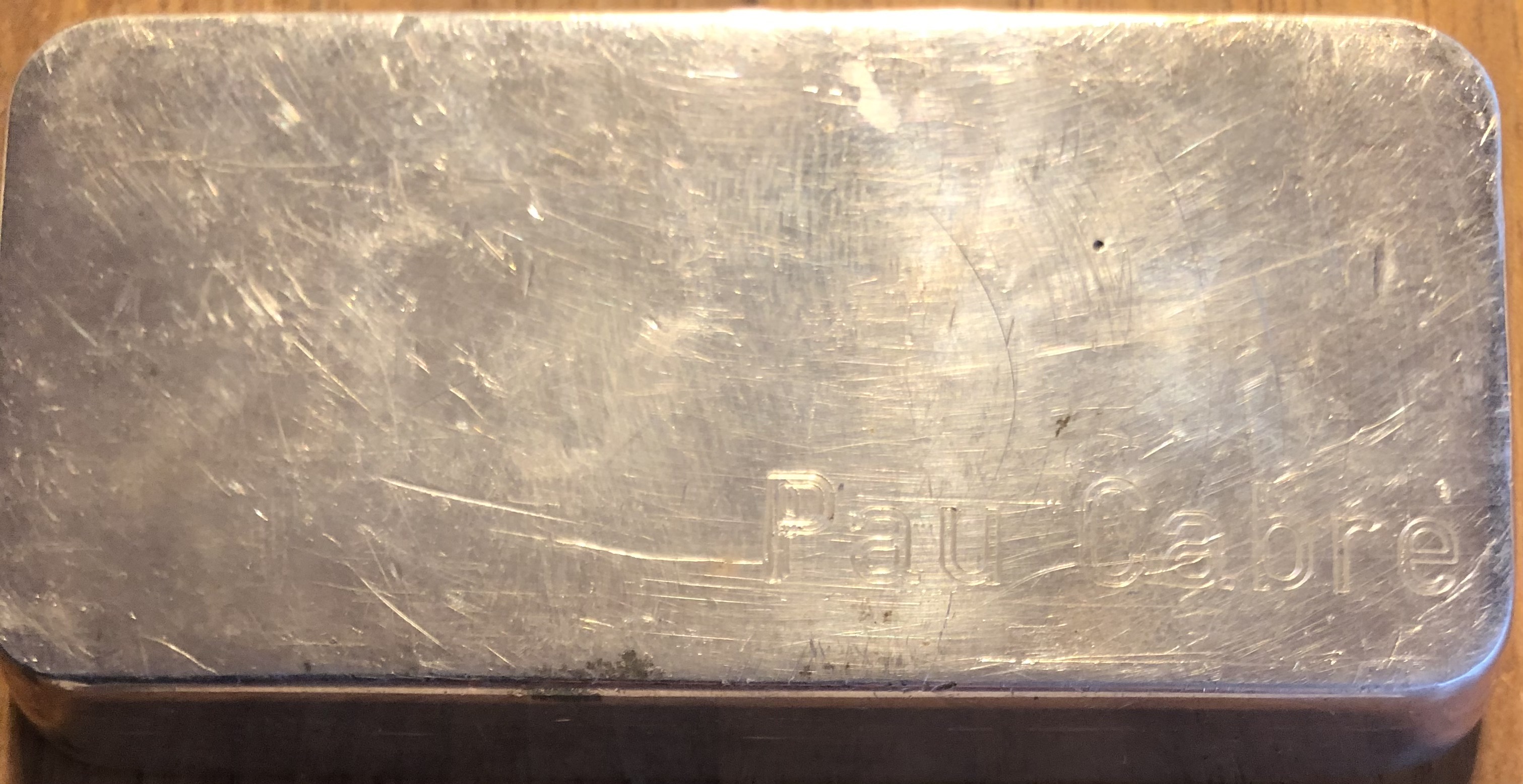 1. Stanzbarren 1/2 Kilo mit verschiedenen Punzen links „30“ und rechts „926“ sowie für mich unleserliche Buchstaben. Auf der Rückseite graviert „Pau Cabre“ was andeutet, dass er in Katalonien gelandet ist. Woher er stammt?