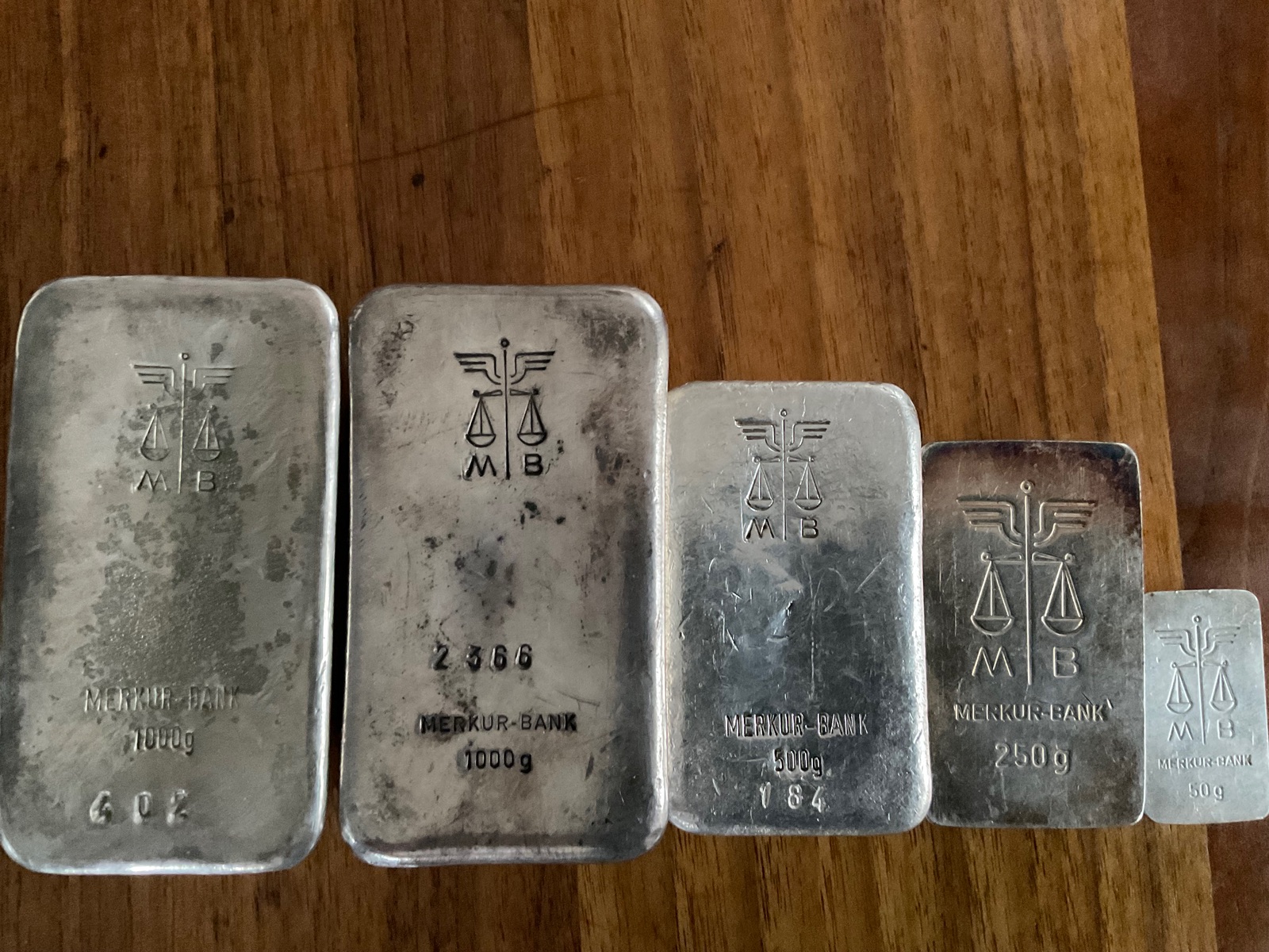 Degussa 500g und 250g Silberbarren, da gibt es nicht soviele verschiedene Barrenformen und Prägungen. Kann da jemand etwas beisteuern? Fand die Beiträge über die Kilostücke hochinteressant.