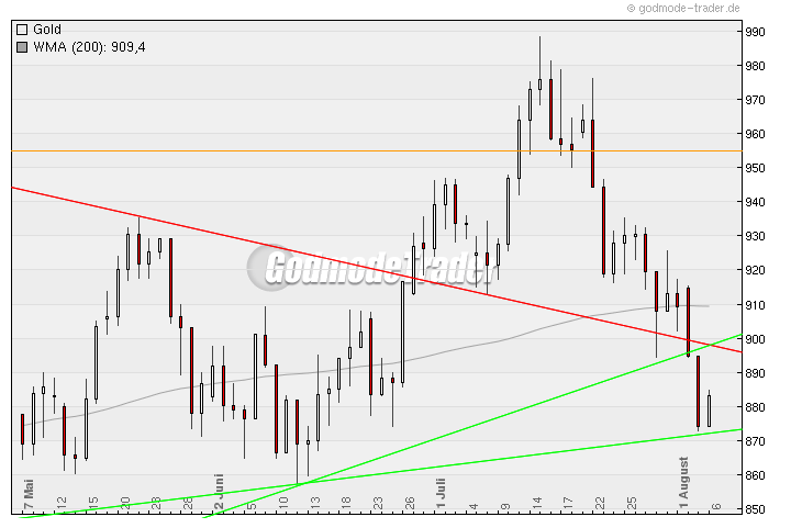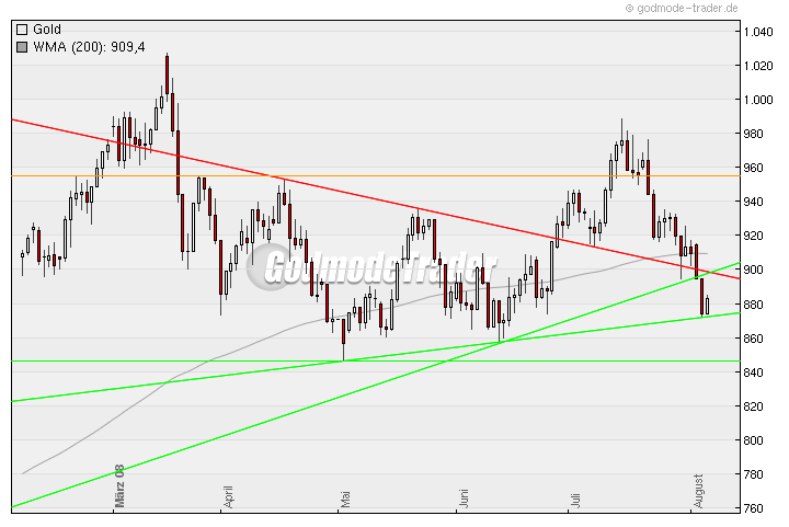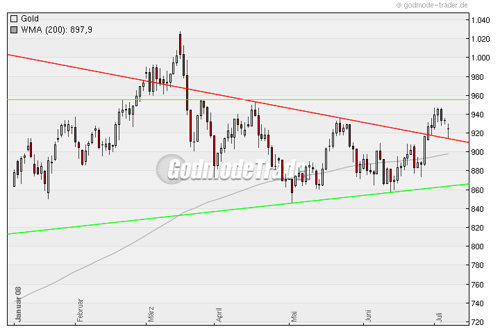 Interessant wird es doch erst wenn Gold über ca. 955$ steigt, oder nochmal Richtung 870$ abtaucht. Dazwischen is der Chartverlauf doch nur zum Daytraden interessant.