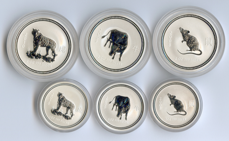 Ich freu mich einfach darüber, dass ich meine 1 + 2 OZ Serie kompletieren konnte. Das Prägejahr ist übrigens bei allen Münzen das Jahr 2007. Lediglich das Jahr auf der Kalenderseite wechselt anhand des Tierzeichens.
