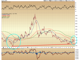 Als Anlagestrategie halte ich ebenfalls den Rat von JS für sinnvoll: selling 1/3 in the strenght...und dann wieder im überverkauften Bereich auffüllen.