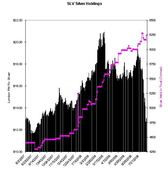 => dito: fast kein Rücksetzer. Per Ende 2008 HÄTTE (!!) der SLV alleine eine Drittel Weltjahresproduktion im Tresor. WENN es denn nicht ein Barclays-Tresor wäre.=> Zwingt diese Jungs zur physisch-allokierten Hortung oder besser noch kauft gleich direkt physisch. Dann ist der Manipulationsspuk in wenigen Monaten mangels physisch verkaufbarer Masse zu Ende.