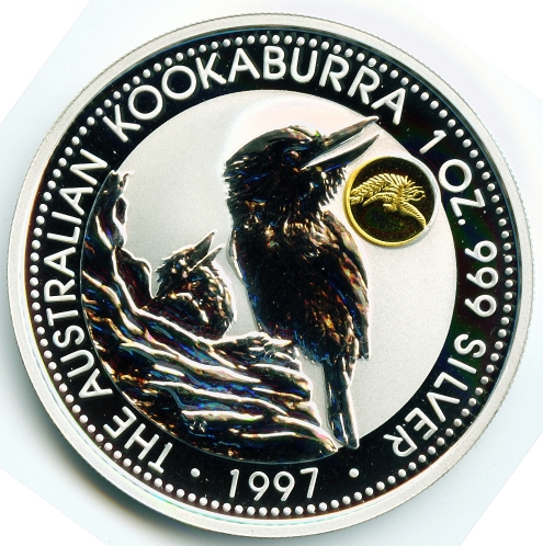 Ein gescannter 1997er 1OZ Kookaburra mit Privy Mark "Phoenix" Revers 25% und 50% bei 1200DPI.