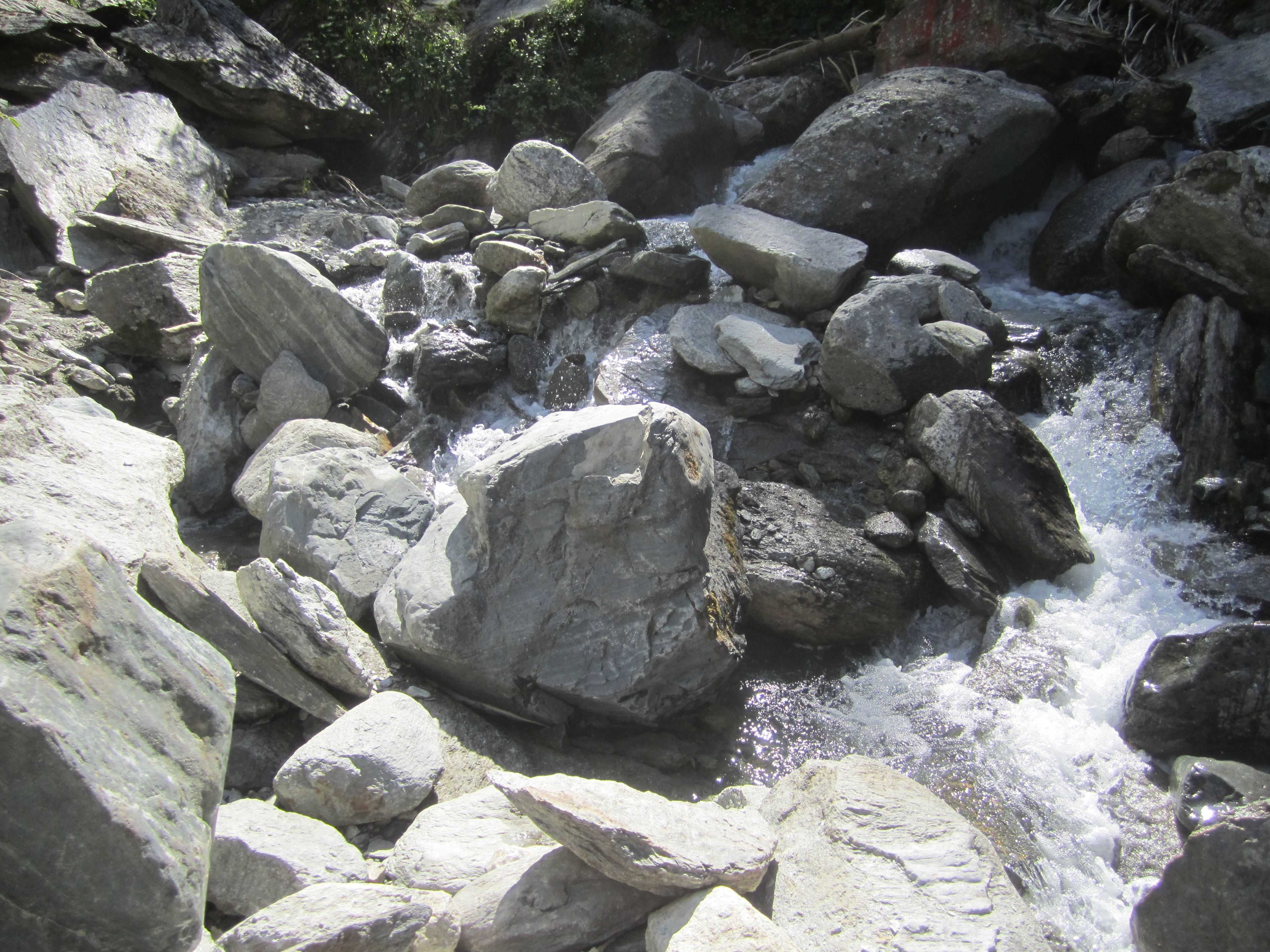 Welch ungeheuren Kräfte selbst in kleinen Bächlein nach sehr starkem Niederschlag herrschen, kann regelmäßig im TV verfolgt werden. Viel krasser ist es in Gebirgsbächen. In Bach-Schluchten verkeilen sich nach einem Hochwasser ganze Baumstämme in beachtlicher Höhe (ich konnte sie in 5 m - 6 m bewundern). Diese Wassermassen bewegen tonnenschwere Felsbrocken und verlagern/zerkleinern demzufolge auch den Bachkies samt Gold - der Bach kocht sozusagen. Vor wenigen Tagen konnte ich wegen dem herrschenden Wasserdruck noch nicht einmal knietiefes Wasser an einer Bachengstelle ohne Sicherungsseil durchqueren - es hat mir einfach die Füße "weggehauen".