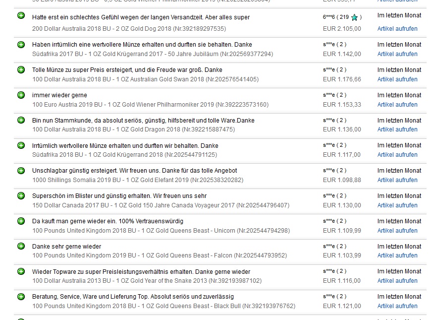 | Haben irrtümlich eine wertvollere Münze erhalten und durften sie behalten. Danke | Käufer: s***e ( 2 ) | Im letzten Monat |