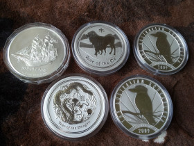 verkaufe 5x 1kg Silbermünzen a 650.-