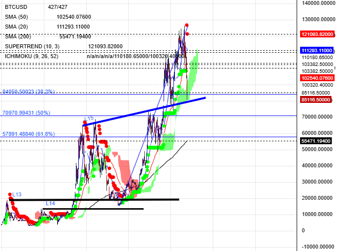 Sie hat ein großes Gap geschlossen und macht bei 116 gerade an ihrer kurzen Abwärts-TL rum.