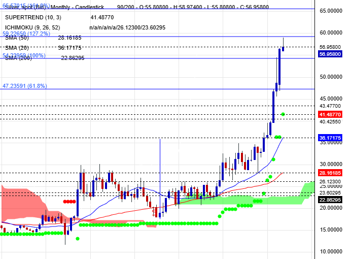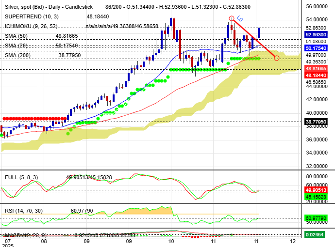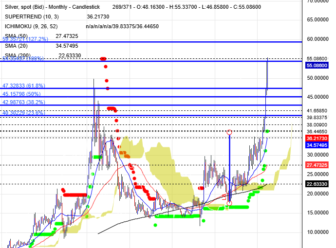 Heute wurde beim Silber wieder mal punktgenau ein doppeltes Fibo-Cluster bei 52,40 USD erreicht, erkannt und vorerst abgelehnt.