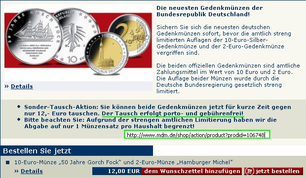 http://www.mdm.de/shop/shortcut/fock >> Gorch Fock Silberzehner + 2,-€ (leider wieder mal Holstentor) für 12,50 €
