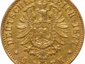 - 5 Mark Wilhelm I. 1877 C - garantiert Original - Erhaltung: hat an 4 Stellen am Rand Henkelspuren, Oberfläche weißt Tragespuren auf - 139 Euro