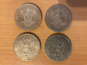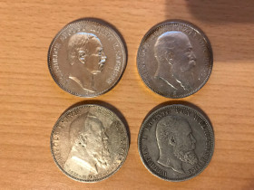 Kaiserreich:- 4 x 5 Mark Sachsen 1908 (vz, vermutlich ex PP), Bayern 1911 Luitpold ss-ss+, Baden 1907 ss, Württemberg 1898 ss