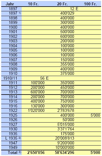 Anbei eine Auflistung mit Praegezahl der Schweizer Vrenelis.